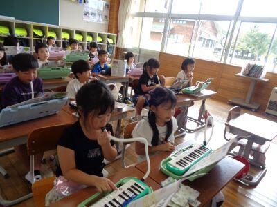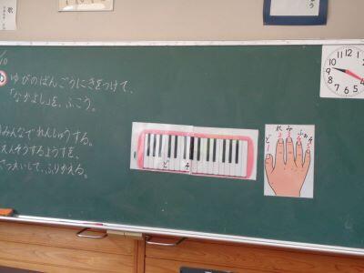 音楽科の授業で、鍵盤ハーモニカの指使いを学びましたにっこり