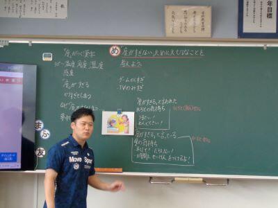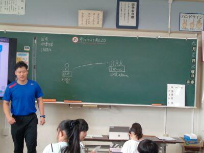 8月8日(金)の午後に、現職教育(職員研修)がありました。今回の内容は「体育実技」の伝達です。体育主任が陸上運動の研修で学んだことを、校内の先生方に伝えました。
