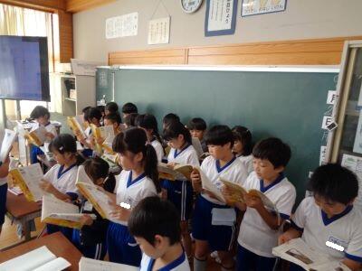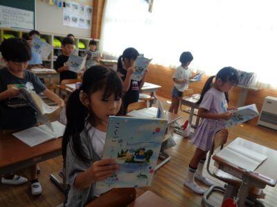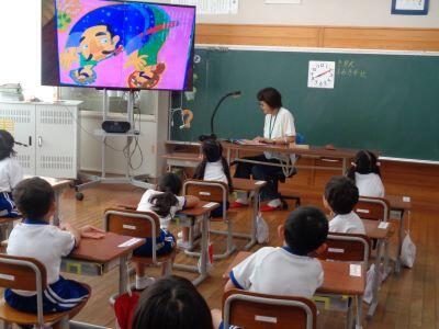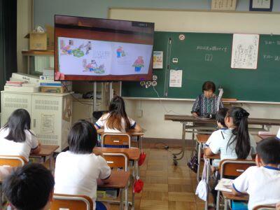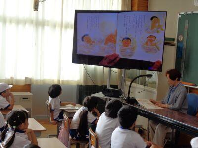 昼休みに、今年度初めてとなる「ボランティアによる読み聞かせ」がありました。4名のボランティアの皆様が来校し、2つの教室で行われました。