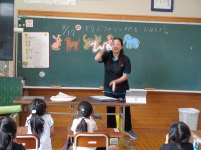 外国語活動で、動物の言い方を学びましたにっこり