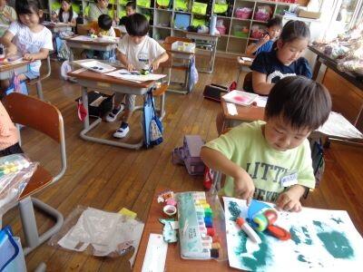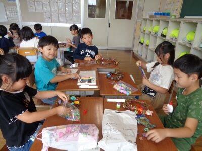 子どもたちは図工が大好き。1年教室と3年教室に行くと、子どもたちが楽しそうな表情で作品づくりに取り組んでいましたキラキラ