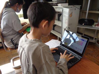 1年生を対象にした「ICT支援員による授業」が行われました。今回の授業では、魚の動きを自分で考えていくプログラミング的な内容を学びました。