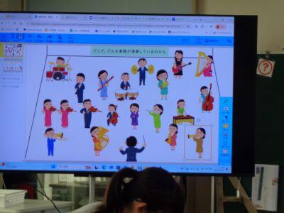 演奏を聴いて、どんな楽器が使われているかを考えました。この授業もまた、Canvaを有効に活用しています音楽