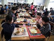 1月24日から1月30日は、全国学校給食週間です。矢板市では、1月24日の学校給食記念日に、矢板市内の小中学校で統一献立を実施しました。この献立は、矢板高校栄養食物科の生徒のみなさんが作成した「チーム☆道の駅レシピ集」を参考に、給食用にアレンジしてとりいれました。デザートのいちごゼリーは、JAしおのやとJA栃木中央会より寄贈されたいちごを加工して作られたものです。子どもたちはおいしそうに食べていました。