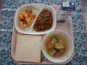 今日の献立は、「コッペパン スラッピージョー 花野菜とチーズのサラダ クラムチャウダー 牛乳」でした。
