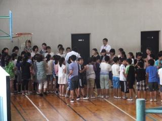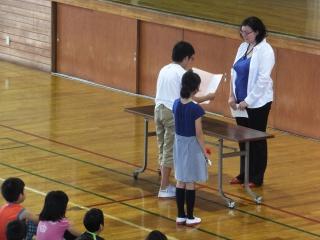 最後に、全校生でお見送りをしました。ハイタッチしながらお別れをした子やハグされて泣き出した子がいました。子どもたちにインタビューしてみました。「センキュー、ベリーマッチ。いい思い出になりました。」、「今までありがとうございました。」、「アメリカに帰っても頑張ってください。」など、感謝の言葉がたくさん出ました。出会いがあれば、必ず別れがあります。出会いと別れという貴重な経験を幾度となく経験して、一時一時を大切にする立派な大人になることでしょう。ALTさん、お元気で。
