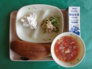 今日の給食のセルフサンドは、フルーツクリームとツナの2種類でした。