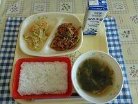 今日の献立は、「ごはん 焼肉 ひじきとツナのナムル 中華スープ 牛乳」でした。