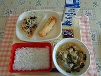 今日の献立は、「きのこごはん あじフライ 豆腐のみそ汁 牛乳」でした。
