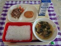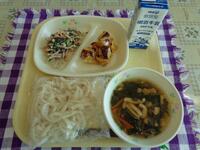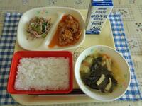 今日の献立は、「和風ビビンバ ほうれん草の韓国風あえもの かんぴょうの中華スープ 牛乳」でした。