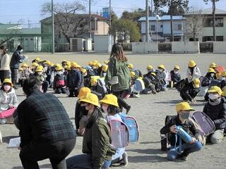 水曜日の一斉下校前に、校庭で令和4年度に向けた新登校班編制が行われました。下級生を上級生が優しく各班に誘導し、担当の先生の指示に従って新しい登校班を編制することができました。