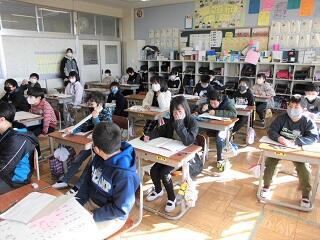 1月10日(火)2学期後半授業開始日。朝の会の時間を利用し、オンラインで校長先生からお話がありました。「うさぎ年は飛躍の年でもあるし、向上の年でもあるので、飛び跳ねるうさぎのように、元気に今までの自分を飛び越えてほしい」という話をされました。また、「新しい学年に向かってのカウントダウンも今日を入れて81日間。一日一日を大切に過ごしてほしい」ともお話をされました。その後、各学級で新年の抱負を発表し合ったり、取り組んだ課題の確認などをしていました。