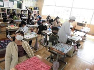 12月20日(火)ぶらぶらクラブの皆様にご協力をいただき、5年生のミシンの学習が行われました。初めてのミシン。まず担任からミシンの使い方の説明後、いろいろな基本の縫い方を教えていただきました。この日は直線縫いを全員仕上げ、「縫えた!」という喜びや、まっすぐに縫えた喜びをそれぞれが表現していました。2回目は22日(木)に行われ、返し縫いや,曲げて縫う方法を教えていただきました。