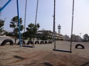 まるで時を止められたかのように校庭の隅にひっそりとたたずむブランコ。