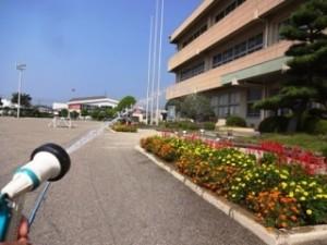 猛暑で校庭の花壇の花たちがぐったりしないように、お盆休み中も日直の先生が毎日水をやっています。