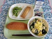 今日の献立は、「ミニはちみつパン 冷やし中華 春巻 枝豆 牛乳」でした。