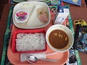 今日の献立は、「麦ごはん アップルカレー 花野菜のサラダ 福神漬け 牛乳(ミルメークコーヒー) 牛乳」でした。