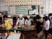 信田煮の信田は、油揚げを使った料理につけられている名前です。信田の由来は、大阪府にある信田稲荷という神社にあるそうです。信田稲荷の神様は狐の姿をしていて油揚げが好きだったことから、油揚げを使った料理を信田やきつねをつけて呼ぶようになりました。今日は鶏ひき肉と豆腐・人参を混ぜ合わせたものを油揚げに包んで煮ました。