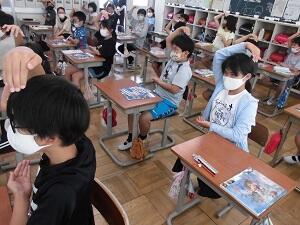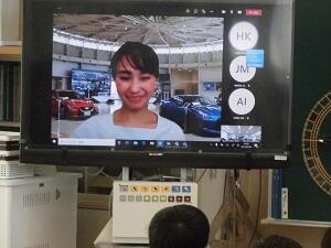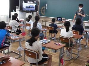 6日(火)に、5年生がオンラインによる工場見学をしました。教室のモニターを通して、説明を受けました。