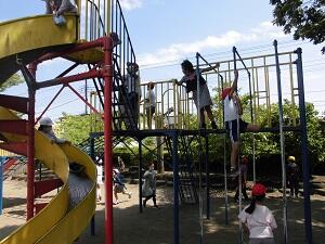 遊具を使っての遊びやボール遊び、鬼ごっこなど、子どもたちは思い思いの遊びを楽しんでいます。