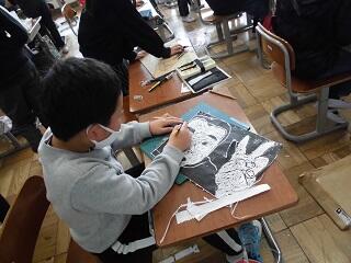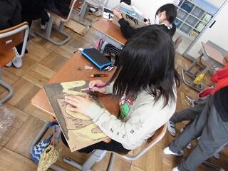 4年生の版画も、いよいよ大詰めとなりました。一人一人が集中して取り組み、続々と作品を完成させています。