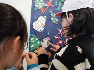 矢板小学校では、ボランティアを募って、折り紙で思い思いのサンタクロースの人形を作りました。