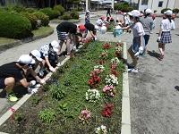 各学年に分かれ、子どもたちは一生懸命に作業に取り組んでいました。また、6年生が低学年の花壇のお手伝いをする姿も見られました。