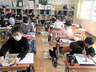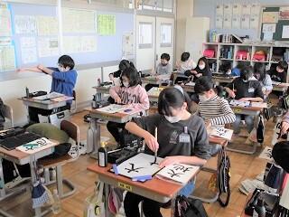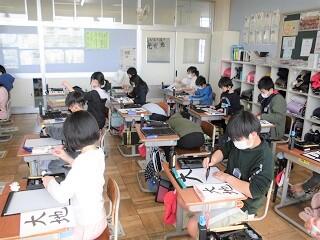 今年度最後の毛筆(習字)の授業となりました。4月にスタートした頃は何となく騒がしくなることもありましたが、今では心を落ち着かせて取り組むことができるようになりました。