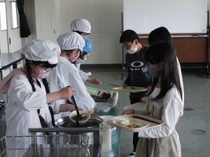密を避けるために廊下や別教室で給食準備をしていますが、給食当番の子たちは自分で考えながら準備を行うことができていました。また、当番以外の子たちは、声がかかるまで教室で静かに待機する姿が見られました。