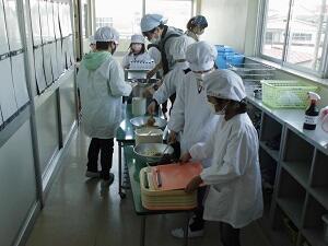 新学期に給食が始まって1週間が過ぎました。上学年の給食準備の様子を見ると、どのクラスでも整然と給食準備を進めていました。