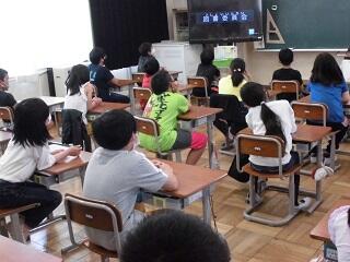 5月26日に、オンラインによる児童集会が行われました。従来は体育館で、各委員会の紹介が行われていましたが、密を状態を避けるためにオンラインでの委員会の紹介となりました。