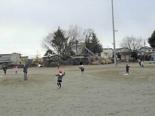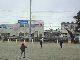 1年生が凧揚げに挑戦しました。一人一人が自分で模様をつけた凧を揚げました。高く舞い上がった凧を見た子どもたちからは、歓声が聞こえてきました。