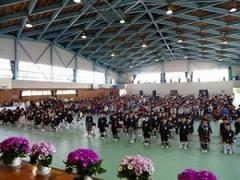 吹奏楽部の演奏に合わせて、全校生でビリーブを手話つきで歌いました。