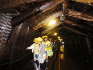 坑道の中は思っていたよりもひんやり涼しいです。半袖だと寒いくらいでした。