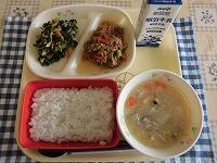 今日の献立は、「おさかな丼 磯香あえ 豆乳仕立ての野菜汁 牛乳」でした。