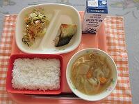 今日の献立は、「ごはん さばのスタミナ焼き 塩昆布の即席漬け 根菜のごま汁 牛乳」でした。