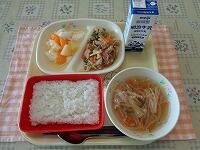 キャベツにはビタミンCが多く含まれています。春に多く出回る春キャベツをたくさん使ったホイコーローが出ました。ごはんがすすむ味付けになっていましたので、今日もよく食べていました。