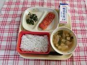 今日の献立は、「麦ごはん いかのチリソース もやしのナムル 豆腐とにらのスープ 牛乳」でした。