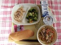 今日の献立は、「コッペパン マーシャルビーンズ きつねうどん ブロッコリーサラダ ヨーグルト 牛乳」でした。