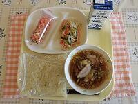 今日の献立は、「醤油ラーメン バンバンジーサラダ 原宿ドッグ 牛乳」でした。