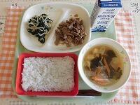 今日は、栃木県の特産物であるかんぴょうを使ったスープが出ました。かんぴょうは、ふくべと言われる瓜の仲間の果実をひも状にむいて乾燥させたものです。かんぴょうの生産量は、栃木県が、全国で第1位です。生産量の90%をしめています。かんぴょうには、カルシウムや鉄、食物繊維が豊富に含まれています。