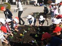 来春まで 寒い冬を乗り切って咲いてくれる パンジーを 学年花壇に植えました。