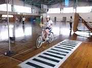 8の字の線からはみ出さないように自転車を運転したり、ピンを倒さないようにジグザグに運転したりします。
