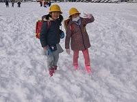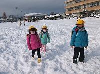 雪の中を、自由気ままに歩いてくる子どもたち…