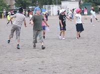 広い校庭を、全力で逃げたりする児童がいる一方、はじのほうでじっと見つからないように隠れたりしている児童もいました。