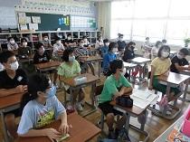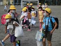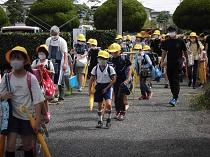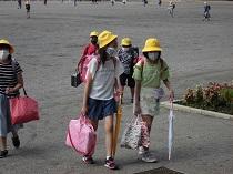 夏休み前の最終日、一斉下校の際に教職員が付き添って下校指導を行いました。新型コロナの影響で、今年は例年よりも短い2週間程度の夏休みとなります。