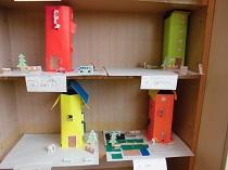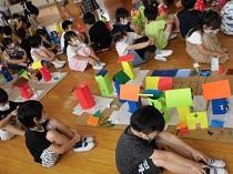 2年生は図画工作科で「カッターナイフタワー」を作りました。カッターを初めて使い、型紙に切れ目を入れて窓をつくっていきました。