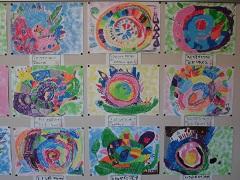 1年生の図画工作科「おはなしうまれたよ」の学習で、絵本のお話をもとにして絵に表しました。1年生の子たちが一生懸命に描いた素敵な作品の数々を御覧ください。