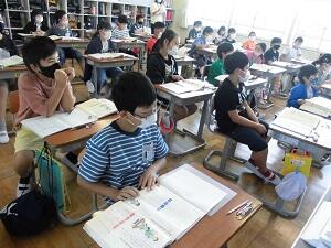 6月9日の3校時に、県民の日集会が行われました。コロナウイルス感染症対策として、今回は初めてオンライン形式での実施となりました。縦割り班ごとに教室に分かれ、画面を通しての集会です。