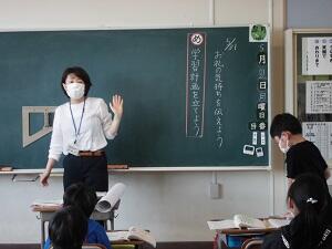 学力向上推進リーダーの先生が、示範という形で授業をしました。「お礼の気持ちを伝えよう」という単元で、手紙の正しい書き方を学びました。